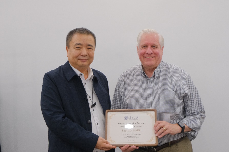 2025世界顶尖科学家协会“生命科学或医学奖”获奖者做客成人动漫 相伯讲堂暨谈家桢生命科学讲坛2025年10月23日,成人动漫 相伯讲堂暨谈家桢生命科学讲坛在江湾校区举行。2025世界顶尖科学家协会奖“生命科学或医学奖”的两位获奖者,美国科学院院士、康奈尔大学分子生物学与遗传学系细胞与分子生物学名誉教授Scott D. EMR,美国科学院院士、犹他大学生物化学系特聘教授兼系主任Wesley SUNDQUIST与师生开展交流并作分享报告。成人动漫 校长、中国科学院院士金力向两位主讲人颁发“成人动漫 相伯讲堂”荣誉证书。两位主讲人因“在受体膜蛋白转运与降解细胞机制研究中的突破性发现”而获得2025世界顶尖科学家协会奖“生命科学或医学奖”,该机制与病毒出芽、感染进程及艾滋病药物干预密切相关。Scott D. EMR作了题为“The ESCRT Pathway: Sorting out membrane protein traffic to the lysosome”的精彩报告。他回顾了从1976年至今近50年的学术生涯,从哈佛大学和加州大学伯克利分校求学,到加州理工学院成立自己实验室,再到加州大学圣
