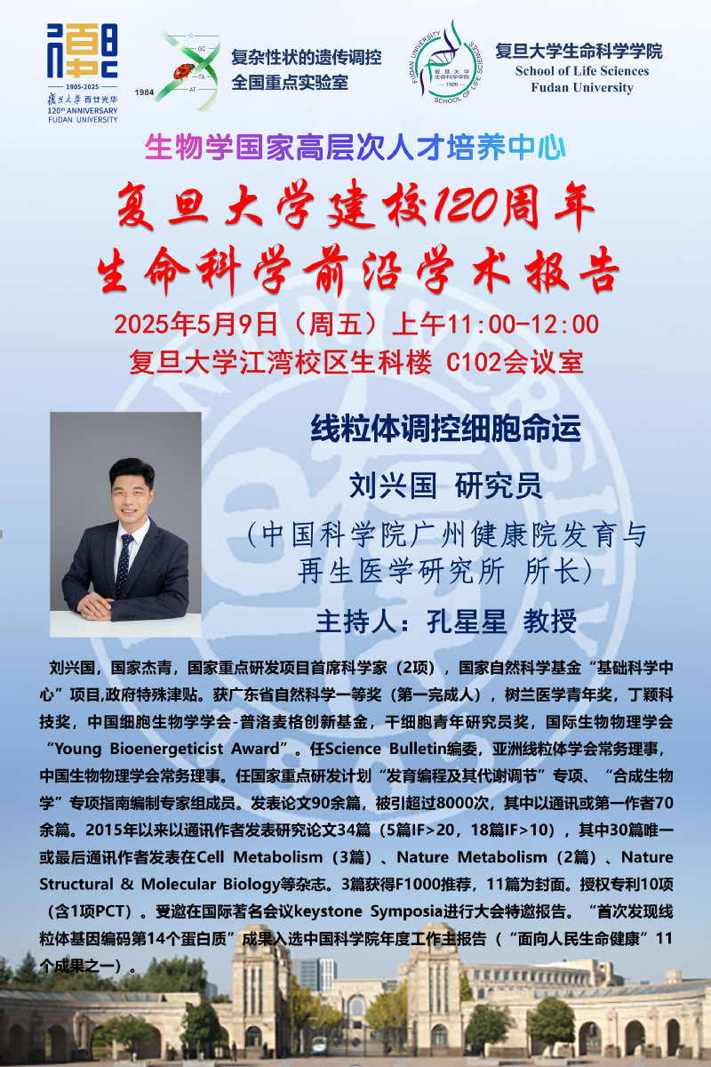 生命科学前沿学术报告-2025-05-09(周五) 11:00,刘兴国 研究员 (中国科学院广州健康院发育与再生医学研究所 所长)