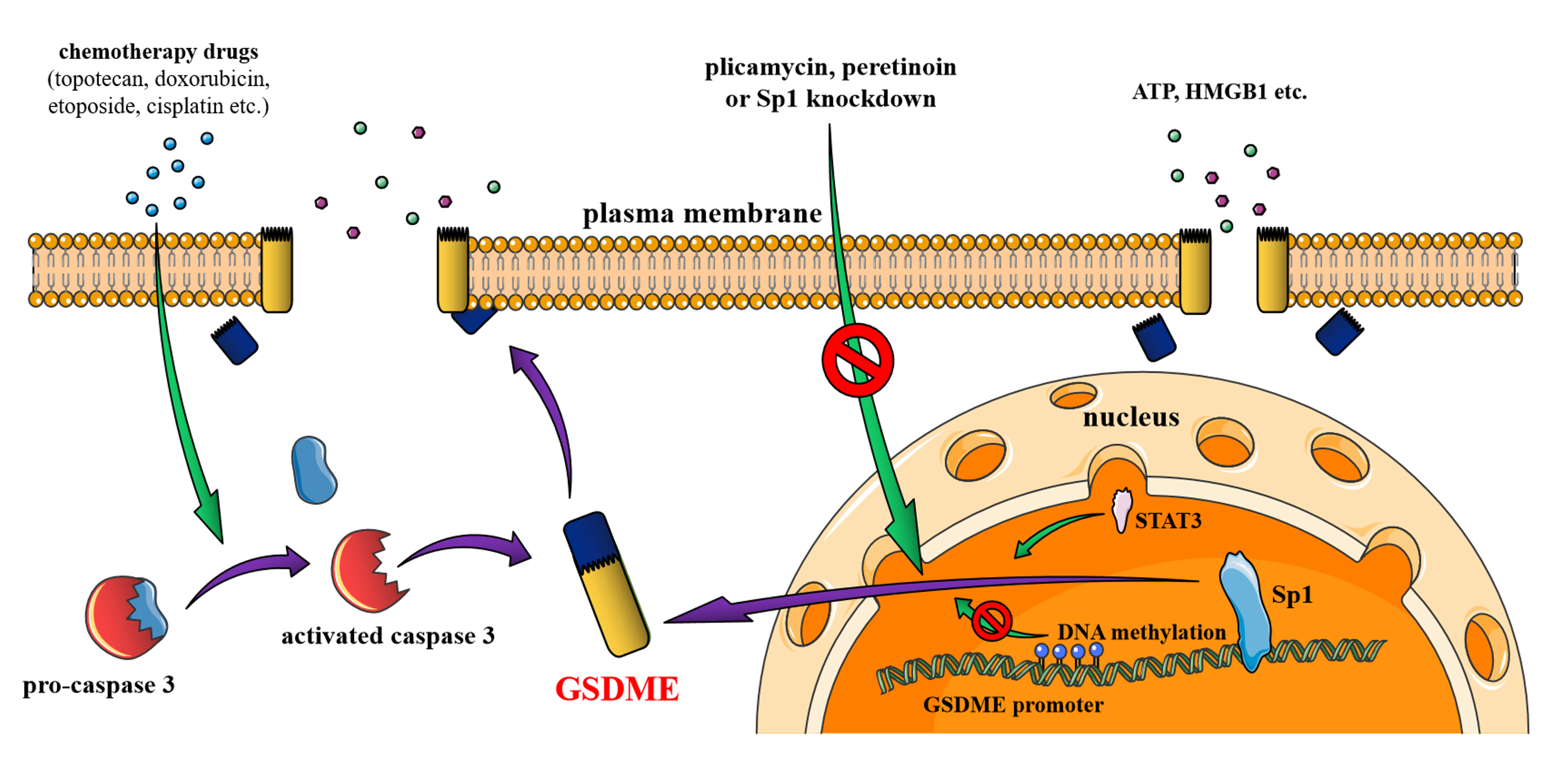 图1,转录因子Sp1调控GSDME模式图。