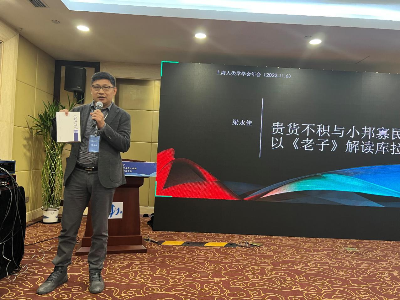 在2022年上海人类学学会学术年会上,学会荣誉会长、成人动漫 校长金力院士作了讲座《流动的基因 进化的旋律》,解析进化人类学与医学健康的大尺度关系。上海中医药大学副校长王拥军教授作了讲座《中医肾精表型组学构建》,又反相解析了医学健康与进化人类学的关系。刑警803的法医陈荣华警官用报告《让物证说话》,把物证扩展到了分子人类学和历史学,讲述了一个曲折离奇的案子如何在人类学的斜杠中被破解……上海交通大学资深教授、神话学研究院首席专家叶舒宪的讲座《文学人类学的国家智库功能》,以长三角地区底蕴深厚的玉文明为主题进行了解读,展示了神话学、考古学与社会人类学的斜杠高峰。浙江大学社会学系梁永佳教授的讲座《“贵货不积与小邦寡民:以《老子》解读库拉”》,试图在《老子》的“贵货”“不积”“小邦寡民”的概念框架里,提出一个以往研究在诠释经济人类学著名案例库拉交易(kula exchange)所忽视的面向——抑制演化(Devolution),即一个社会体系有意避免发生社会权力的持续积累,避免引发我们所熟悉的“文明化”过程。