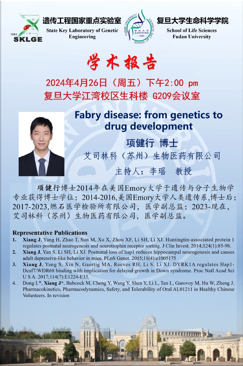 学系报告-2024年4月26日(周五)下午2:00-项健行 博士(艾司林科生物医药有限公司),生科院G209