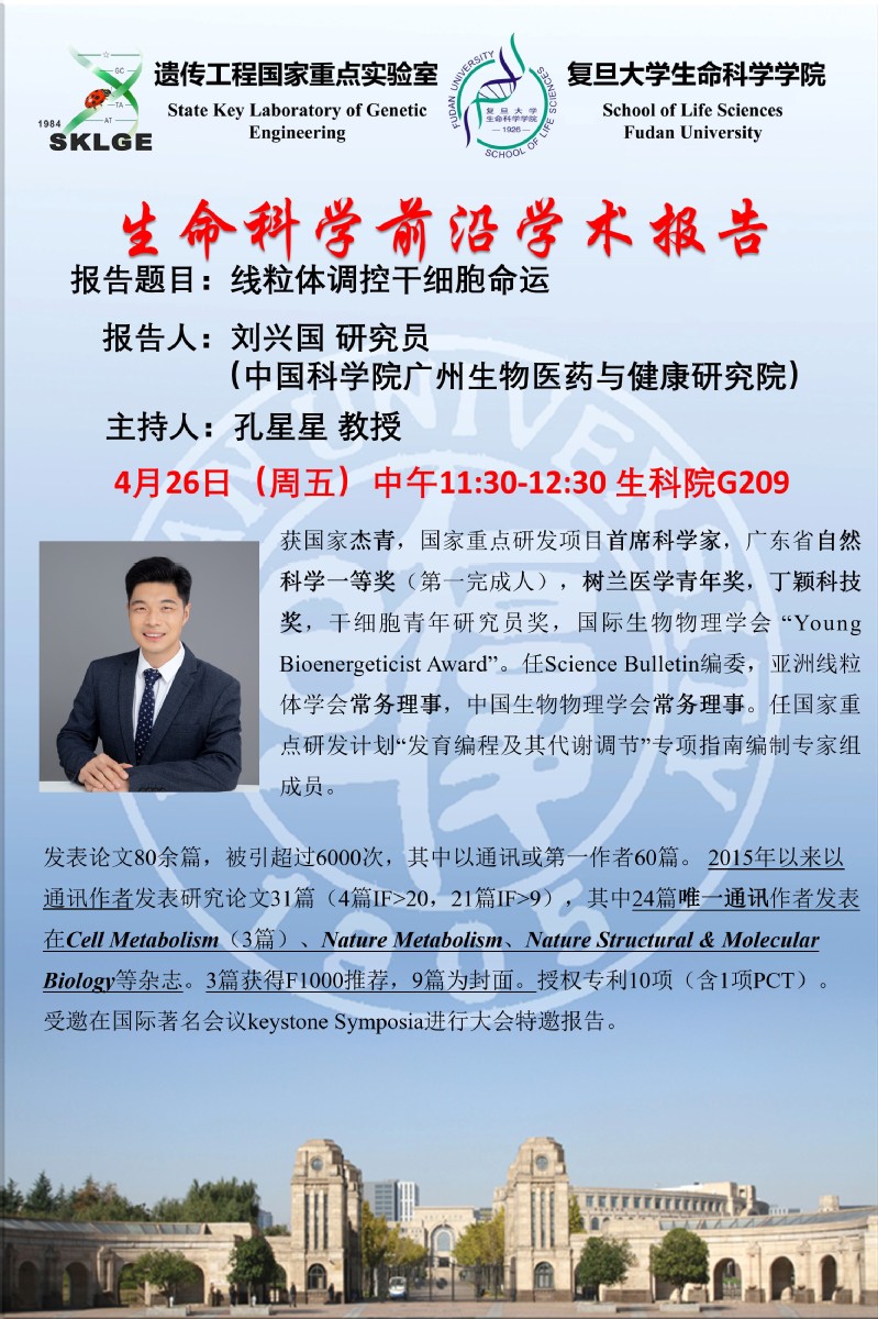 生命科学前沿学术报告-4月26日(周五) ,刘兴国 研究员(中国科学院广州生物医药与健康研究院),生科院G209