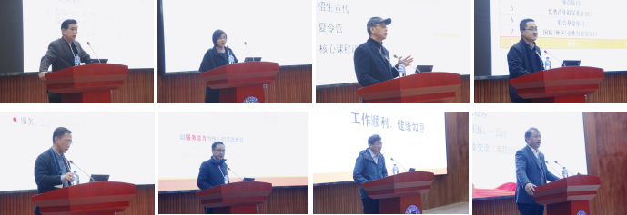 首先,林鑫华院长分别从学科建设、国重平台建设、本科和研究生教学改革、人才引进、国重重组等五个方面介绍2021年工作重点。随后,孙璘、王纲、聂明、杨忠副院长和丁澦、余文博副书记等分别对本科教学,研究生教学,科研项目和科技奖项申报,行政、公共平台管理,校地合作,疫情联防联控,青年教师培养,本科生和研究生思想政治管理等方面介绍了2021年重点工作。陈浩明书记分别从党建、人事人才、退管、校友、安全稳定等五个方面部署本年度重点工作要求。