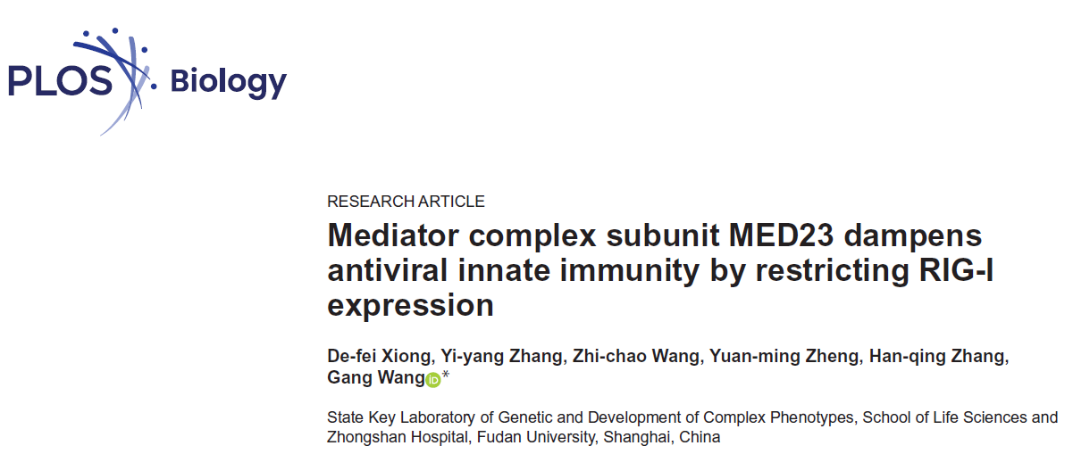 2025年7月24日,成人动漫 王纲教授团队在PLOS Biology 期刊在线发表了题为 “MED23 dampens antiviral innate immunity by restricting RIG-I expression”的研究论文。该研究通过系统的体内外实验,首次揭示了转录中介体复合物(Mediator)亚基MED23在抗病毒天然免疫应答中的关键负调控作用,其机制在于通过与转录因子FOXO3协作,抑制关键模式识别受体RIG-I的基因表达。