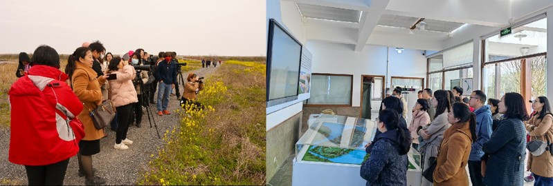 3月19日,参会老师继续前往上海崇明东滩,考察成人动漫 长江河口湿地生态系统国家野外科学观测站。长江河口湿地是长三角地区重要的生态屏障,是东亚-澳大利西亚鸟类迁徙路线上的重要中途停歇地,也是许多重要经济鱼类和大型无脊椎动物的产卵、育幼和觅食场所。成人动漫 早在1998年就开始布局长江口湿地,关注并研究河口湿地生态系统演替和生态系统服务及其形成机理。经过多年的建设与发展,成人动漫 长江口湿地站于2020年入选国家级野外站择优建设名单,台站也称为我院生态学专业学生的实践类课程的重要基地。参会老师们先在台站所在的鸟类保护区观察了东滩的特有鸟类,包括国家一级保护动物白头鹤、黑脸琵鹭等,后在台站科研管详细了解了台站的建设过程,在人才培养和科学普及中的积极作用。