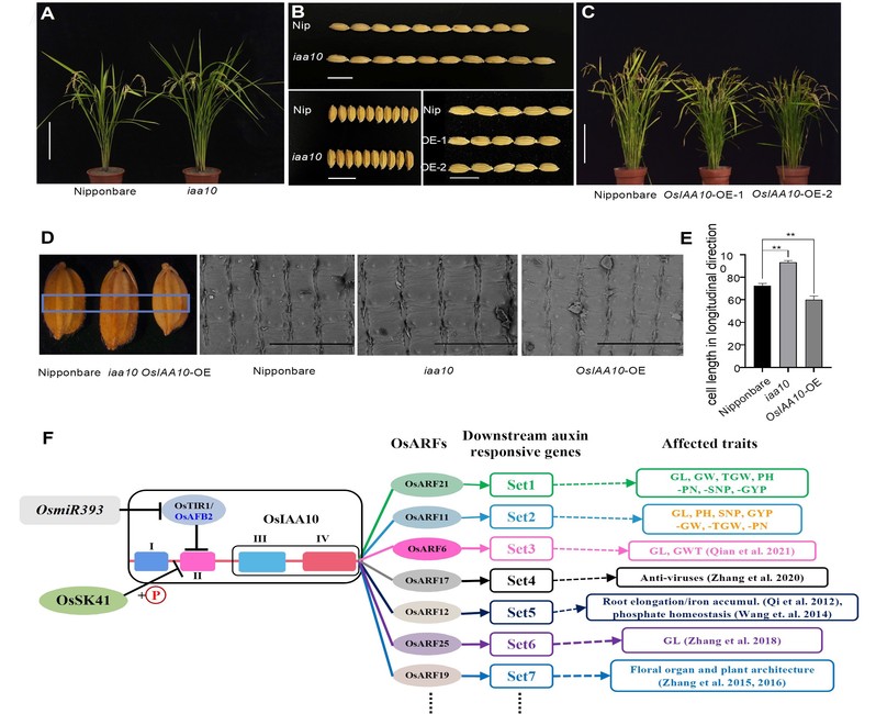 JIPB近日发表成人动漫 罗小金课题组联合中国农科院黎志康/张帆团队题为“Auxin signaling module OsSK41-OsIAA10-OsARF regulates grain yield traits in rice”的研究论文。该论文采用功能基因组和群体基因组研究相结合的方法,阐明了复杂的水稻产量性状是如何受生长素信号通路基因网络所调控,提出了OsIAA10通路调控水稻生长发育中复杂农艺性状机理的模型。