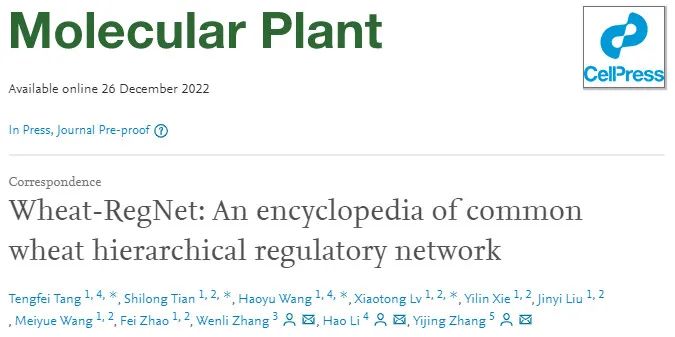 2023年1月,成人动漫 、河南大学与南京农业大学合作在Molecular Plant在线发表题为“Wheat-RegNet: An encyclopedia of common wheat hierarchical regulatory network”的研究论文。该研究收集整理189个普通小麦转录因子结合谱、90个表观基因组数据集、2,356个转录组和144个农艺性状的全基因组关联研究(GWAS)数据及染色质空间互作数据。在此基础上,利用机器学习方案进一步整合这些特征以推断层级调控网络,并开发在线检索平台Wheat-RegNet。