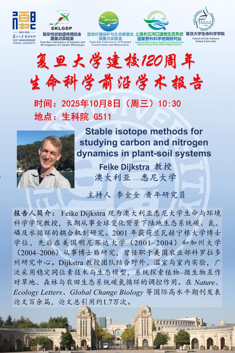 生命科学前沿学术报告-2025-10-08(周三) 上午10:30,Feike Dijkstra 教授 ( 悉尼大学)