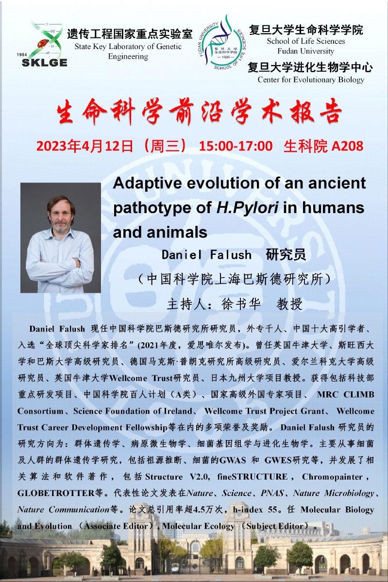 生命科学前沿学术报告-2023-4-12(周三)下午15:00,Daniel Falush 研究员(中国科学院上海巴斯德研究所)