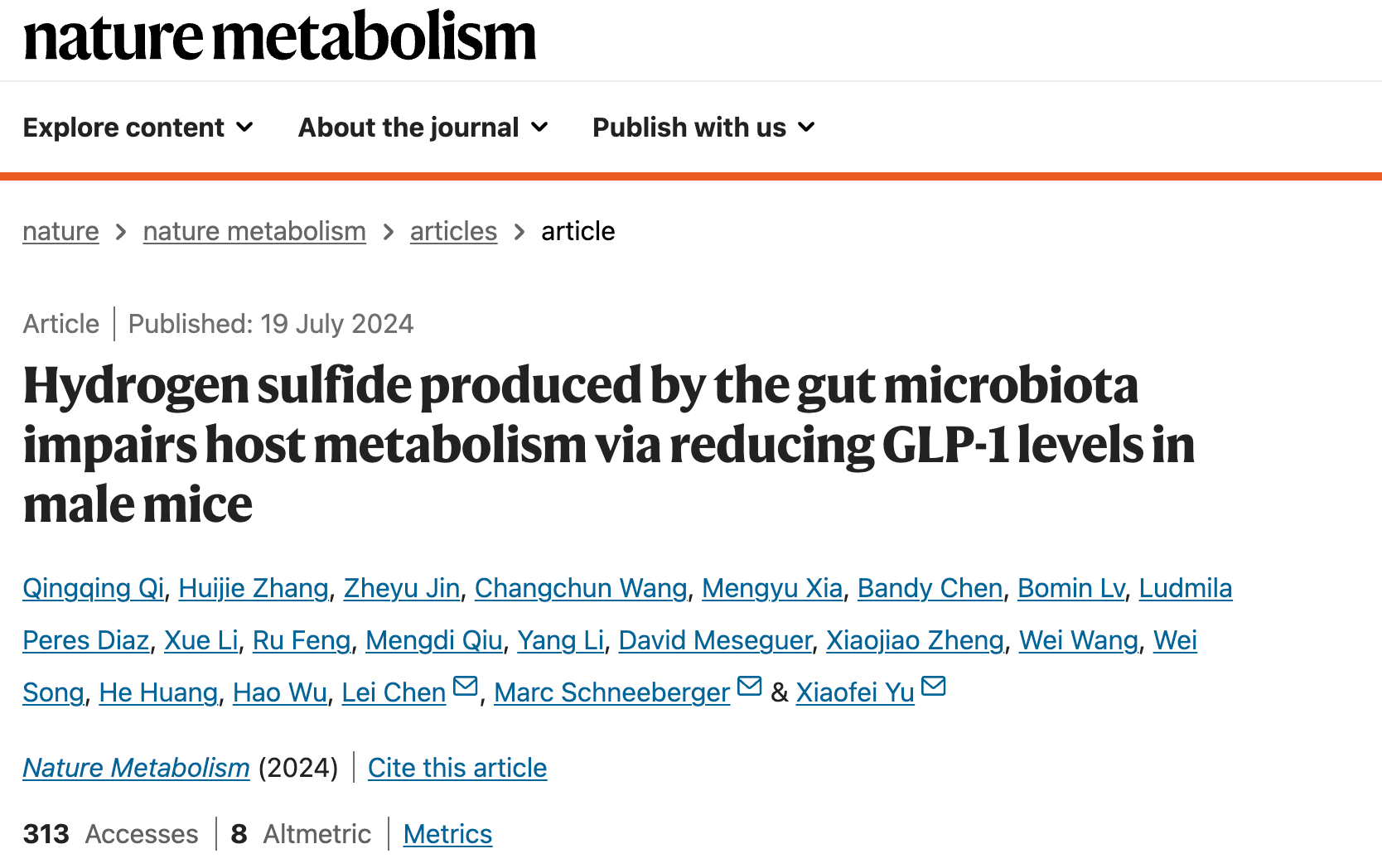 2024年07月19日,成人动漫 于肖飞团队在Nature Metabolism发表了题目为Hydrogen sulfide produced by the gut microbiota impairs host metabolism via reducing GLP-1 levels in male mice的文章,报道了以脱硫弧菌(Desulfovibrio)为代表的肠道菌可通过产生硫化氢抑制GLP-1的产生,并促进肥胖等代谢疾病的发生,从而揭示了肠道菌通过肠道“中继”影响机体代谢的新通路。由肠道菌群领域著名专家、美国RUTGERS大学赵立平教授撰写的评述文章“'H2S as a metabolic saboteur”也同期上线。