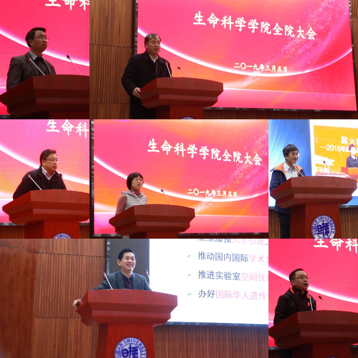 其次,学院领导班子成员介绍本学期工作计划安排。首先林鑫华院长分别从国重和类器官平台建设、本科教学和研究生教学改革、人才引进、学术交流、空间优化、国际华人遗传学大会等六个方面对2019年的工作进行了部署。之后学院班子成员杨继、卢大儒、吴纪华、丁澦和余文博老师等分别从本科生培养方案改革结合学院课程模块、教学PI改革做整体推动部署;严格管理研究生面试纪律、认真把关研究生毕业论文;科研基金项目申报、组织各类讲座及学术交流活动;推动青年教师培养及扎实做好工会妇委会等服务工作;本科生和研究生思想政治管理等多个方面对工作进行了整体部署介绍。