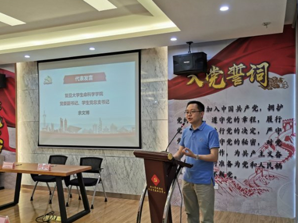 仪式主要包括参观学习、共建签约揭牌和“微型党课”三个环节。在签约揭牌之前,成人动漫 党委书记陈浩明老师带领新江湾城老年协会离退休干部党支部同志和2018级研究生第三、第四党支部同学参观了院士墙和遗传工程国家重点实验室陈列展览。陈老师介绍了谈家桢老先生和复旦生科的故事:谈先生为中国遗传学的发展做出了巨大的贡献,自谈先生后,复旦生科院的遗传学人才辈出,为推动遗传学基础研究和生物医药产业发展做出了杰出的贡献。新江湾城老年协会离退休干部党支部同志频频感叹复旦生科人的勇于拼搏和不懈奋斗。随后,大家来到新江湾城街道党建服务中心参观。中心一层设有多媒体放映室、党建文化宣传展览。在一楼,工作人员为大家介绍了中心的主要工作和整体规划,加深了同学们对街道党建工作的认识。
