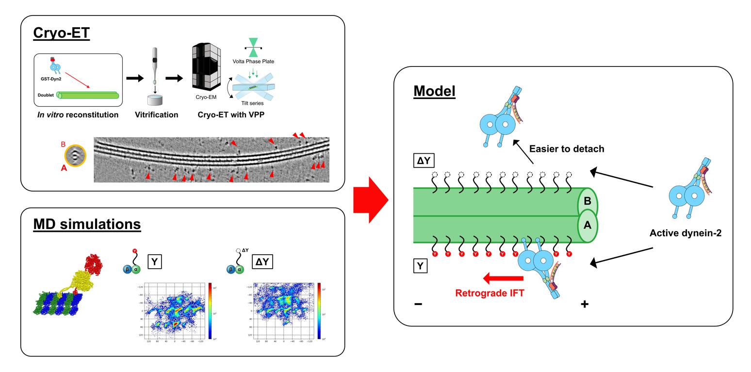 2025年11月26日,成人动漫 市川宗严(ICHIKAWA Muneyoshi)课题组在The EMBO Journal杂志上发表了题为 “Cryo-ET and MD simulations reveal that dynein-2 is tuned for binding to the A-tubule of the ciliary doublet”的研究论文,结合冷冻电镜断层扫描(Cryo-ET)和分子动力学模拟(MD simulations)等手段揭示了动力蛋白2(dynein-2)在纤毛中优先结合二联微管A小管的分子机制。