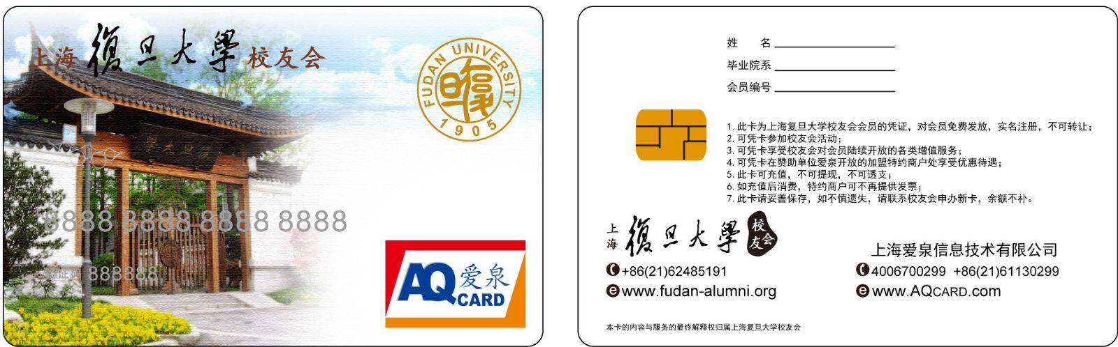 校友会会员卡的推出,作为上海校友会工作中的一个重要项目,现已正式启动。在此特别感谢上海爱泉信息技术有限公司提供制作与热线服务。