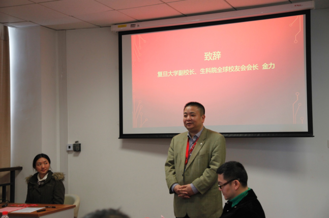 副校长、生科院全球校友会会长金力致辞,在致辞中他向各位校友的到来表示热烈欢迎和诚挚问候,向心系母校、支持学院建设发展的历届校友表示衷心感谢。他说校友是学校的宝贵财富,校友工作关乎学校的未来发展,在他看来,校友一方面是学院的历史,校友身上记载着学院在人才培养、科学研究和社会服务等方面的突出贡献,另一方面,校友是学院的标尺,学院的名片和生动的教材,校友用自己的经验和业绩潜移默化的影响每一个后来的生科人。金校长表示将继续大力支持校友会开展工作,联络和凝聚各地校友,加强校友与学院、校友与校友之间的联系和沟通,增进友谊,互助发展,共同推动学院事业和校友的进步与发展。