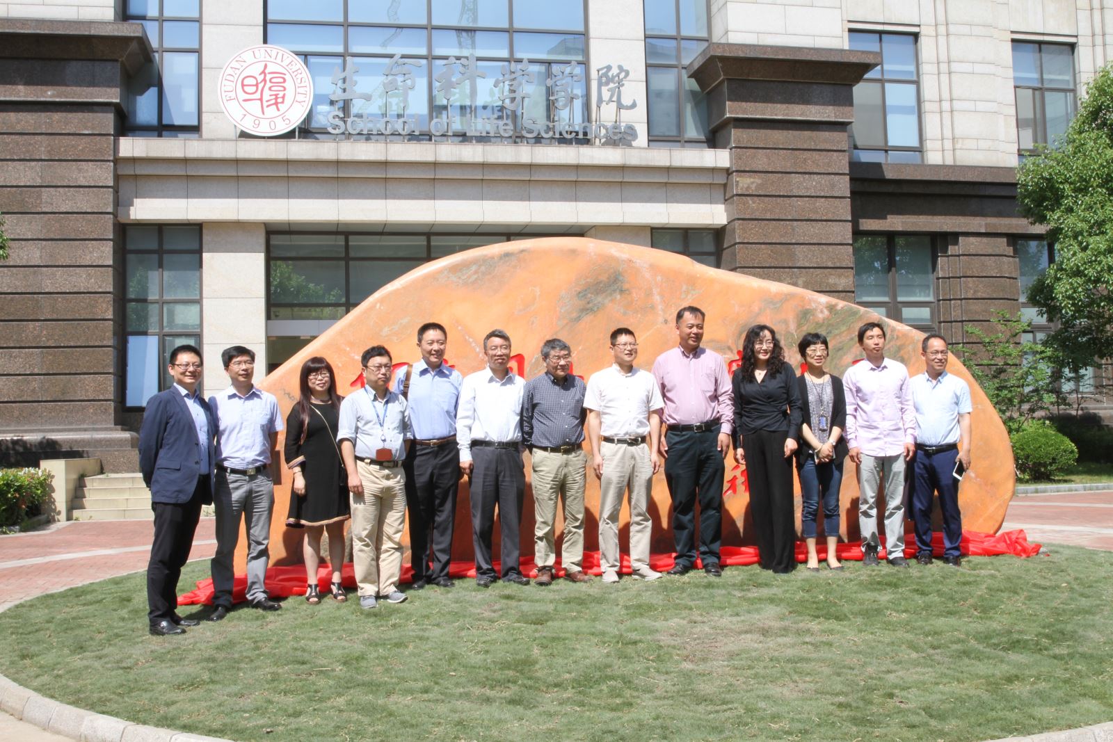 此后,全部来宾移步至院铭石落成处举行院铭石揭幕仪式,陈浩明书记和卞雪莲董事长及各位与会来宾共同为院铭石揭幕。