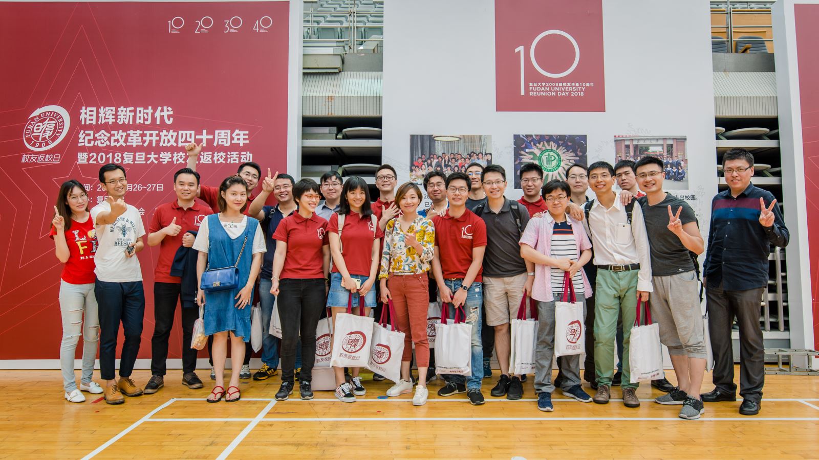 上午正大体育馆,同学们共同参与了学校组织的"相辉新时代:纪念改革开放40周年暨2018成人动漫 校友返校主题大会",大会上郝珂威和顾希垚校友代表2004级生科的同学,给敬爱的辅导员蒋蕾老师和彭靖老师献上美丽的鲜花。大会结束后,大家旦苑餐厅聚餐,旦苑的饭菜让同学们重新感受了本科时在食堂度过的美好时光。