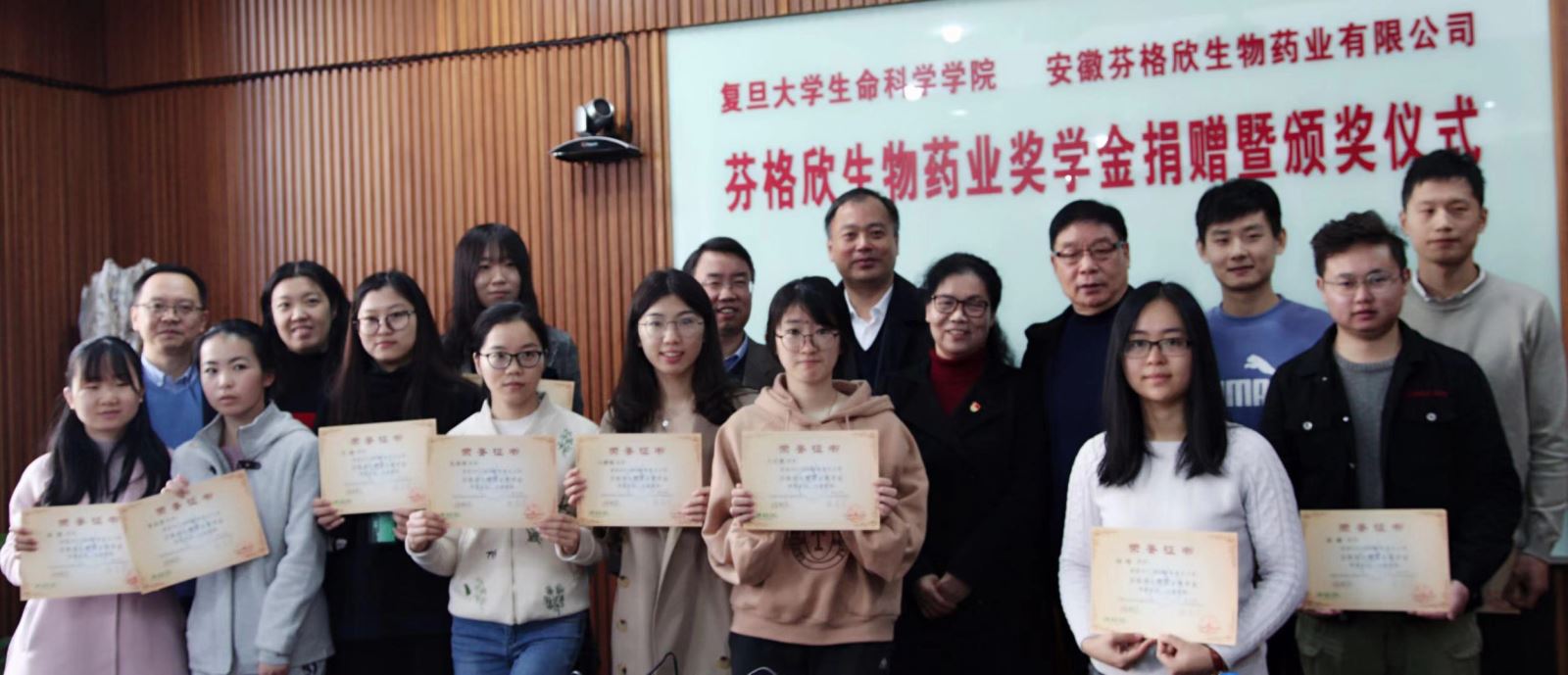 2018年11月19日上午,复旦芬格欣生物药业奖学金捐赠暨颁奖仪式在成人动漫 A208会议室隆重举行,成人动漫 对外联络与发展处副处长陆颖丰,成人动漫 党委书记陈浩明,学院副院长、全球校友会执行会长卢大儒,党委副书记余文博,安徽省芬格欣生物药业有限公司董事长徐邦杰,全国劳动模范、徐董夫人夏省云一行出席颁奖仪式,会议由陈浩明书记主持。