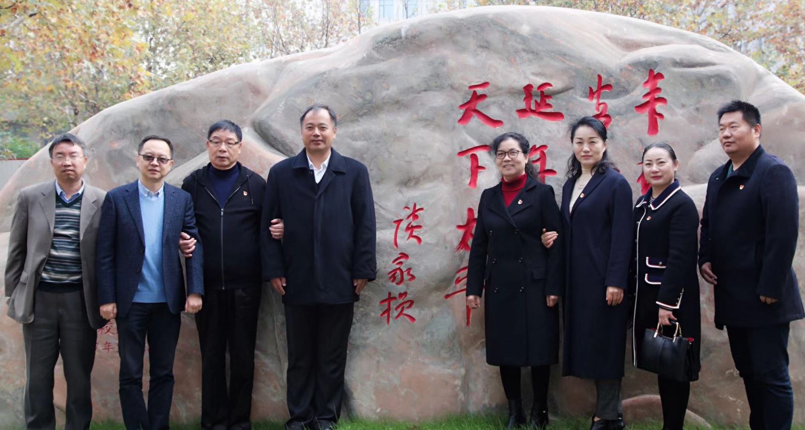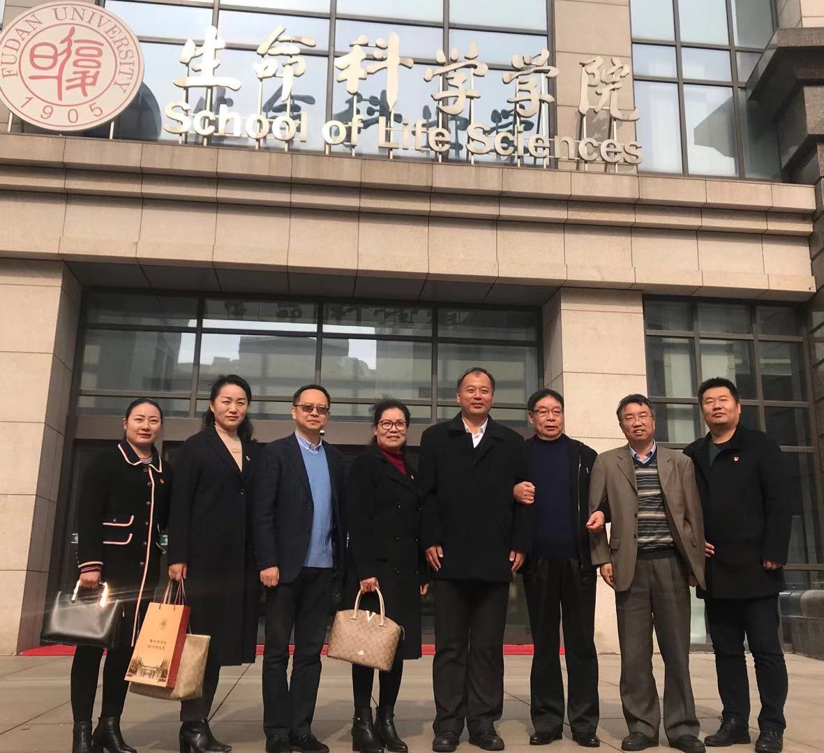参观完国重实验室后,徐邦杰董事长一行在谈家桢先生纪念铜像和成人动漫 大楼前留下珍贵的合影。