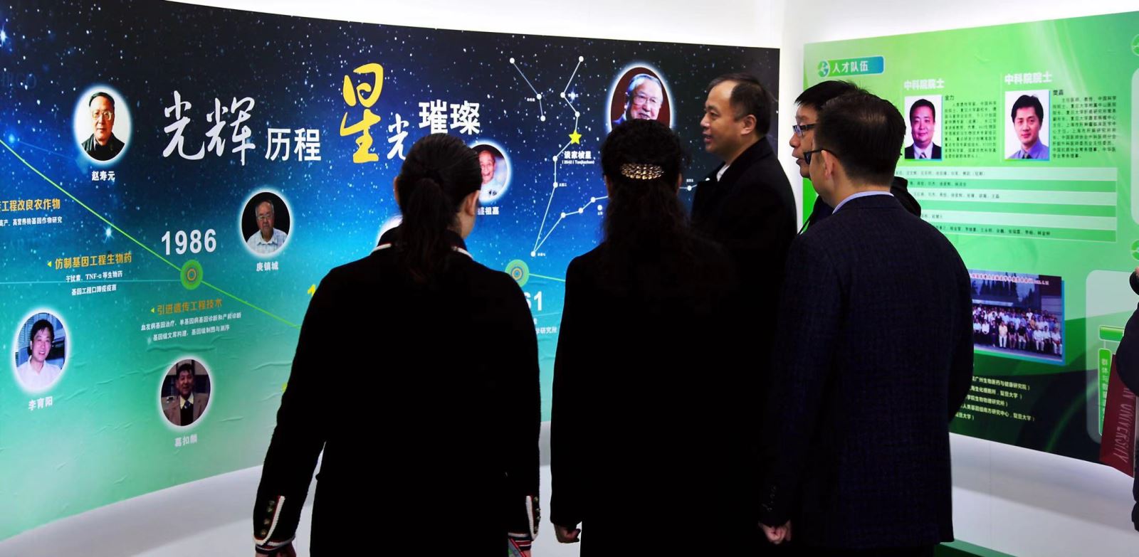 随后,陈浩明书记带领徐邦杰董事长一行参观了遗传工程国家重点实验室陈列馆,陈书记介绍了国重实验室发展的光辉历程,该实验室是在我国遗传学奠基人、著名遗传学家谈家桢院士所创立,一直以来坚持围绕生命科学前沿和国家战略需求,发挥在遗传学与遗传工程研究领域的传统优势,提升科技自主创新能力,培养遗传学杰出人才。