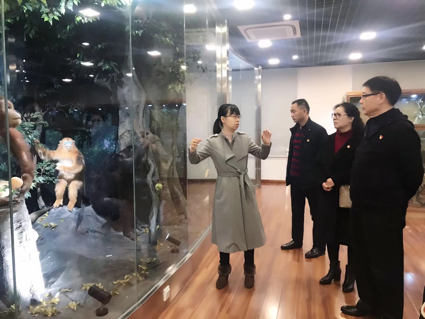 颁奖仪式后,成人动漫 实验教学中心副主任吴燕华带领徐邦杰董事长一行参观了祖嘉博物馆,哺乳、鸟类是其中最大的两个展厅,种类繁多、制作精美。两馆中存放着珍贵的大熊猫、白鳍豚、灵长类以及鹤、鹳、猛禽、鸡类等国家级一级保护鸟类标本。吴主任对这些动物的分类、生理特征和生活习性一一进行讲解,徐董事长啧啧称赞,表示大开眼界。