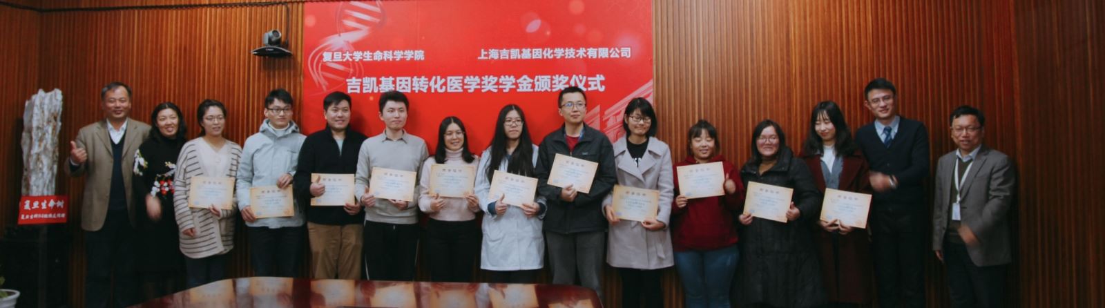 2018年12月11日下午,复旦吉凯基因转化医学奖学金颁奖仪式在成人动漫 A208会议室隆重举行,成人动漫 对外联络与发展处副处长陆颖丰,成人动漫 党委书记陈浩明,党委副书记钟江,吉凯基因化学技术有限公司科研工具事业部总经理曾立, 获奖学生出席了颁奖仪式,会议由陈浩明书记主持。