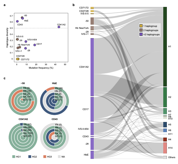1、南方β地贫突变频繁,起源复杂且具有显著区域差异
