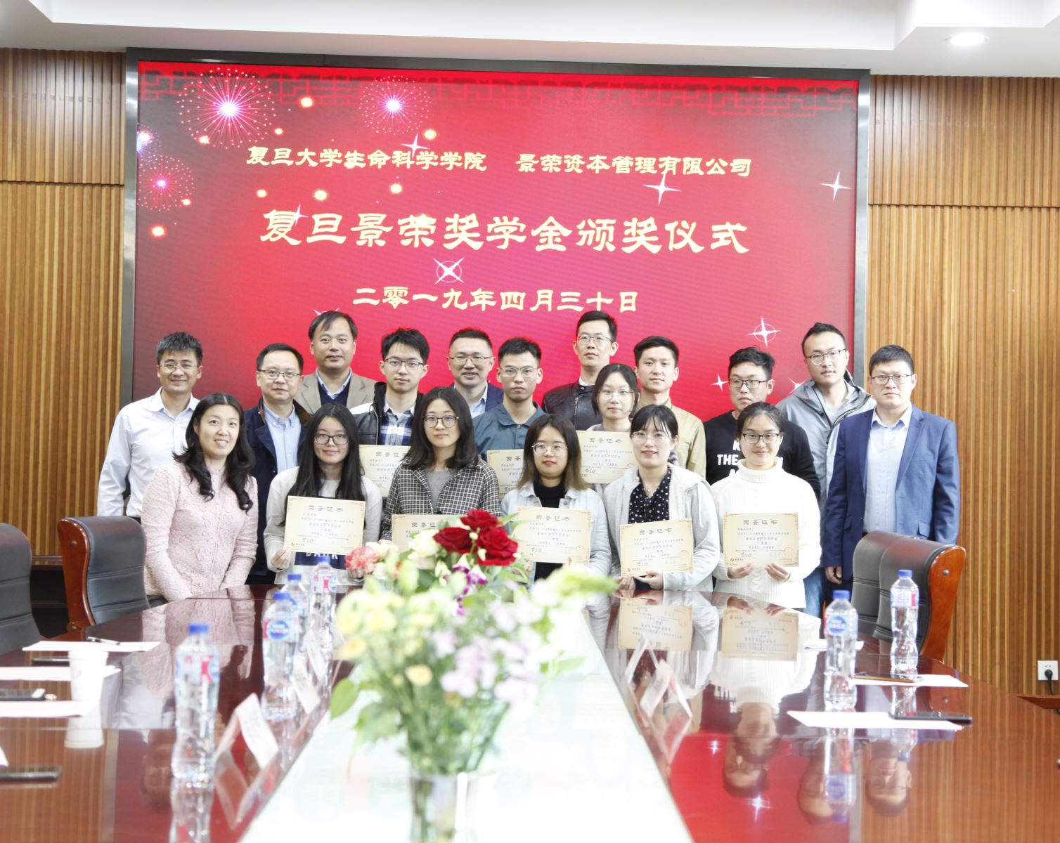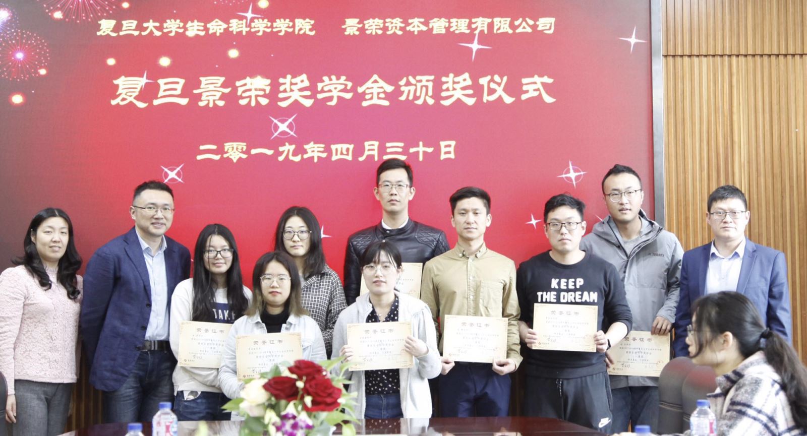 颁奖仪式上,陈浩明书记首先致辞,他首先代表学院和获奖学子对景荣资本表示了感谢,景荣资本在成立后不久就设立复旦景荣生命科学奖学金,奖励学业优秀的生科院学子,这是一个有温度的奖学金,很特别。陈书记介绍说最近学院喜事不断,金力院士团队在Nature主刊发表了最新研究成果;金老师本人也刚刚获得全球卓越科学成就奖,他承担的上海市重大项目——人类表型组的研究也涉及到广泛的产学研结合。与此同时,今年八月和十一月学院将分别举行全球华人遗传学大会和成都复旦世联会的生物医药主题论坛,陈书记欢迎校友们届时参加,共同促进产学研的交流与合作,推动合作项目的落地。热烈祝贺获奖的同学!