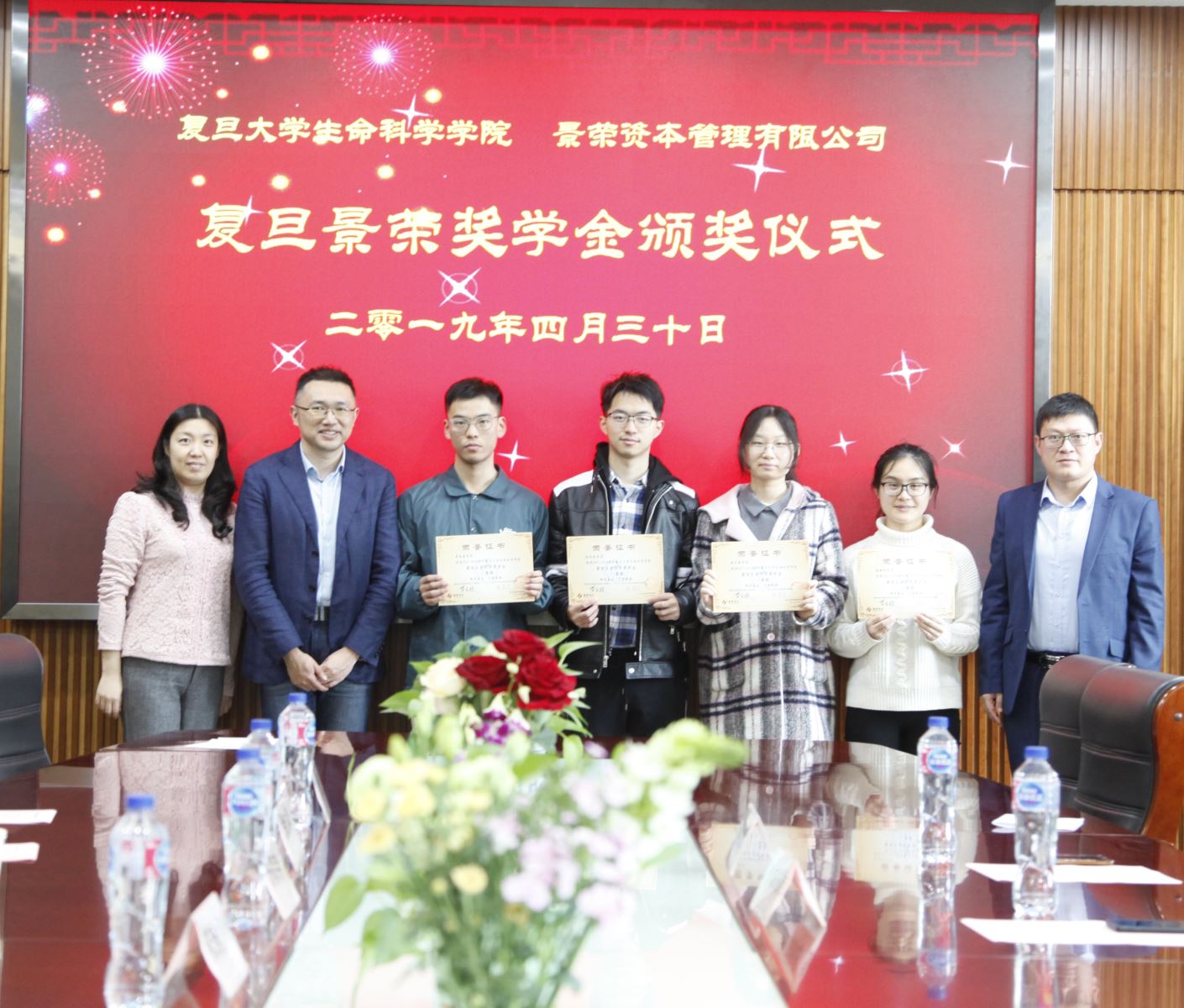 2019年4月30日中午,复旦景荣生命科学奖学金颁奖仪式在成人动漫 A208会议室顺利举行。成人动漫 对外联络与发展处副处长陆颖丰,成人动漫 分党委书记陈浩明,分党委副书记余文博、丁澦,上海景荣资本副总裁、景旭创投创始合伙人、学院1997级校友钱庭栀,景旭创投投资总监、学院1997级校友时锋,景荣生命科学奖学金获奖学生等共同出席了颁奖仪式。会议由陈浩明书记主持。