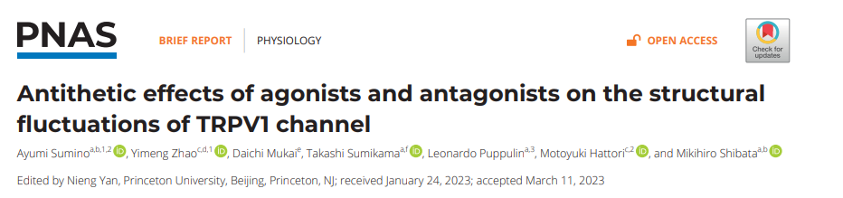 2023年5月8日,成人动漫 服部素之团队和日本金泽大学的Ayumu Sumino团队联合在Proc. Natl. Acad. Sci. USA杂志在线发表题为Antithetic effects of agonists and antagonists on the structural fluctuations of TRPV1 channel的文章,利用高速原子力显微镜(HS-AFM)测量了TRPV1通道与其激动剂或拮抗剂结合时的结构波动变化,通过结构波动之间的对比,进一步揭示了产生辣感和热感的分子机制。