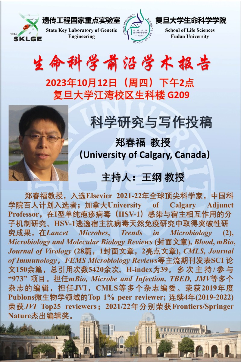 生命科学前沿学术报告-2023-10-12(周四)14:00,郑春福 教授(University of Calgary)