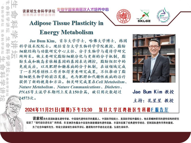谈家桢生命科学讲坛-2024-11月21日(周二)下午13:30,Jae Bum Kim 教授(韩国科学技术院院士)