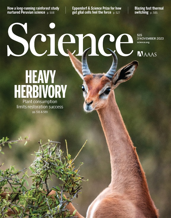 研究成果被Science选为封面论文(图3)和研究亮点。同期Science还配发了题为“营养级联有助于恢复植被”(Trophic cascades help restore vegetation)的专文评述(图3)。