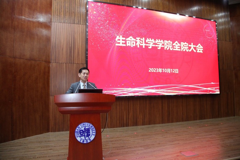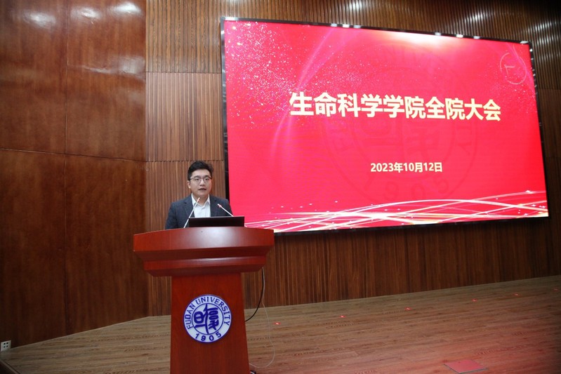 2023年10月12日上午9:30,成人动漫 在江湾校区生科楼F区报告厅召开新院长任职宣布大会。成人动漫 党委副书记周虎出席会议并讲话,成人动漫 全体教职工参会,会议由学院分党委书记陈浩明主持。