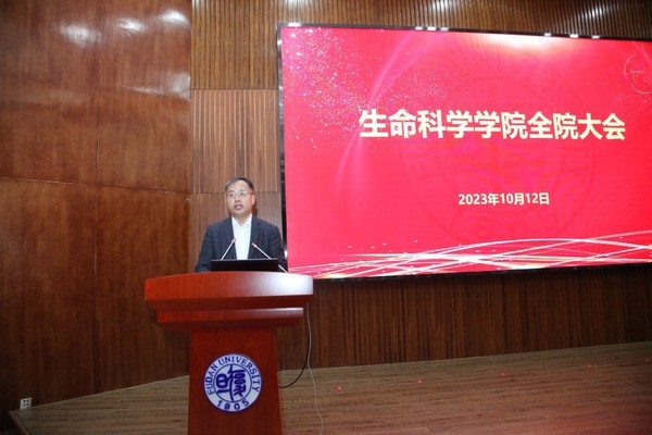 院长表示祝贺与欢迎。林鑫华同志深情回顾了六年来学院在学科发展、平台建设、文化体系建设、人才引进、学生培养等方面的工作历程,感谢学校领导、学院班子成员和各位老师在工作中给予的大力支持。他表示会继续支持学院工作,并期待罗凌飞同志继承生科院的优点,为生科院的长远发展和建设“第一个复旦”谋篇布局。