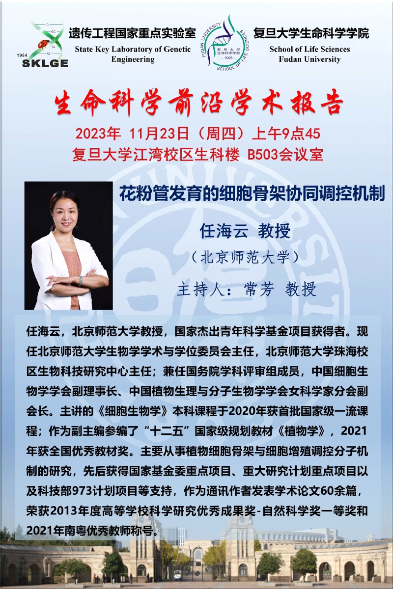 生命科学前沿学术报告-2023-11-23(周四)上午9:45,任海云 教授(北京师范大学)