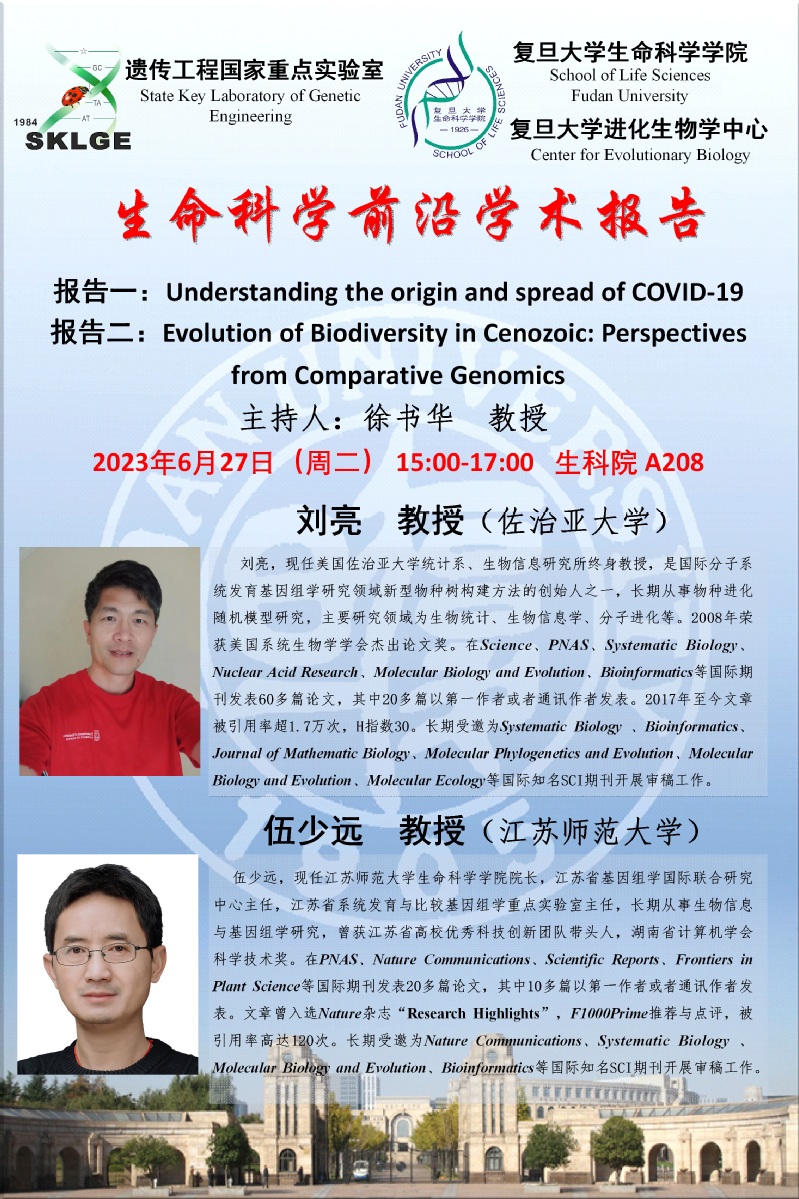 生命科学前沿学术报告-2023-06-27(周二)15:00,刘亮 教授(佐治亚大学),伍少远 教授(江苏师范大学)