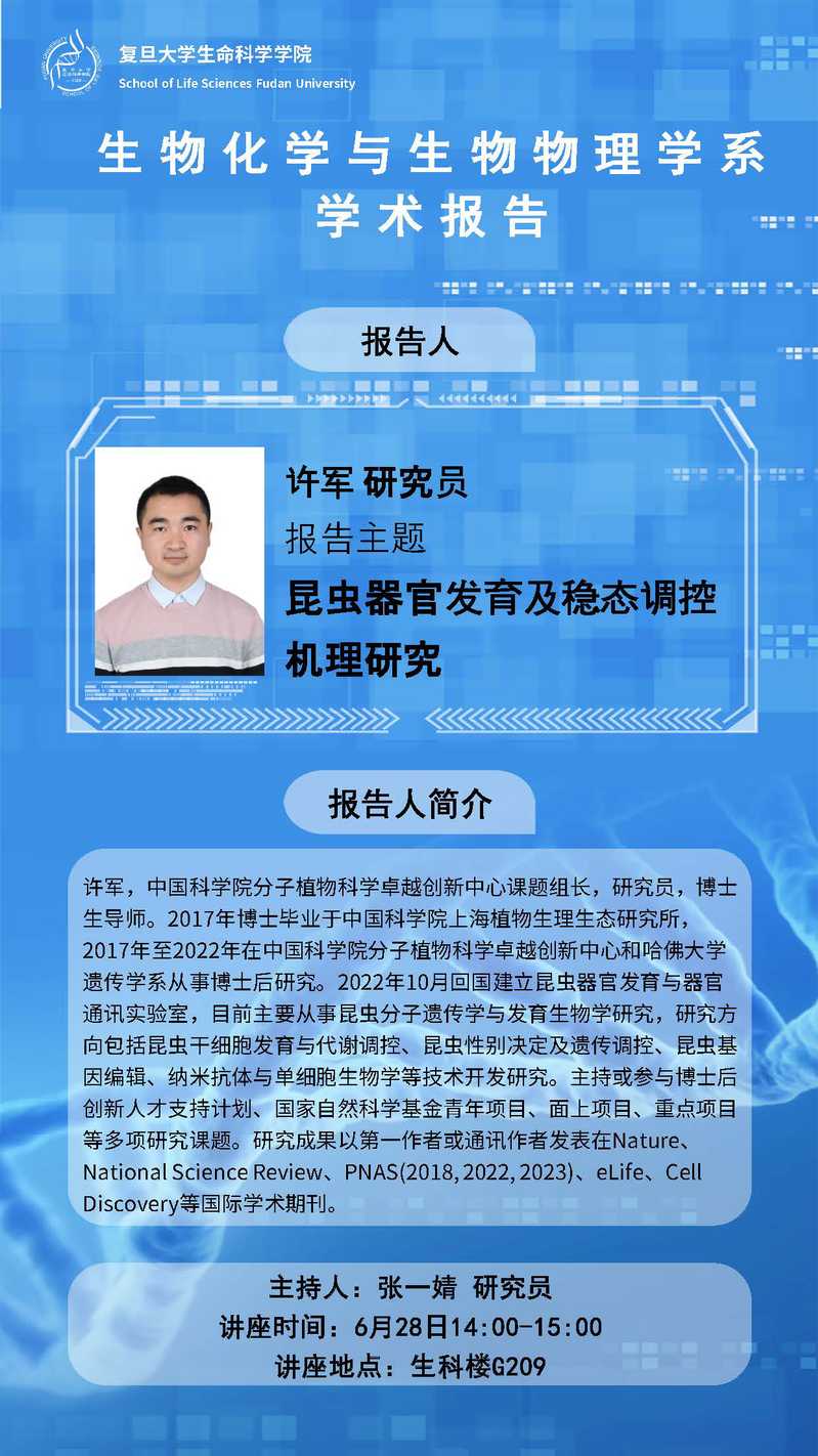 生物化学与生物物理系邀请报告-2023-06-28(周三)下午14:00,许军 研究 员(中科院分子植物卓越创新心)