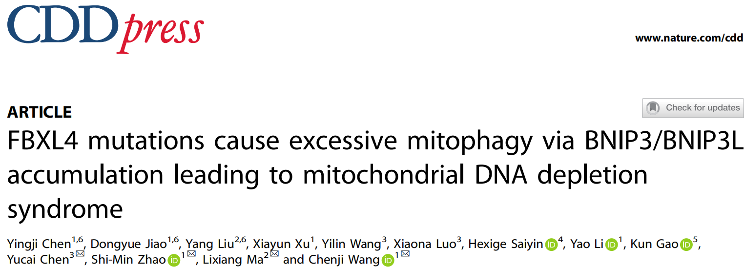 2023年8月12日,成人动漫 王陈继团队、基础医学院马丽香团队、附属妇产科医院赵世民团队和上海市儿童医院陈育才团队合作在Cell Death & Differentiation在线发表了题为 FBXL4 mutations cause excessive mitophagy via BNIP3/BNIP3L accumulation leading to mitochondrial DNA depletion syndrome的研究论文(图一)。该研究发现FBXL4基因突变导致线粒体自噬(mitophagy)受体BNIP3和BNIP3L蛋白异常积累,线粒体自噬过度激活,进而导致线粒体数目急剧下降,是其突变致病的内在分子机制。