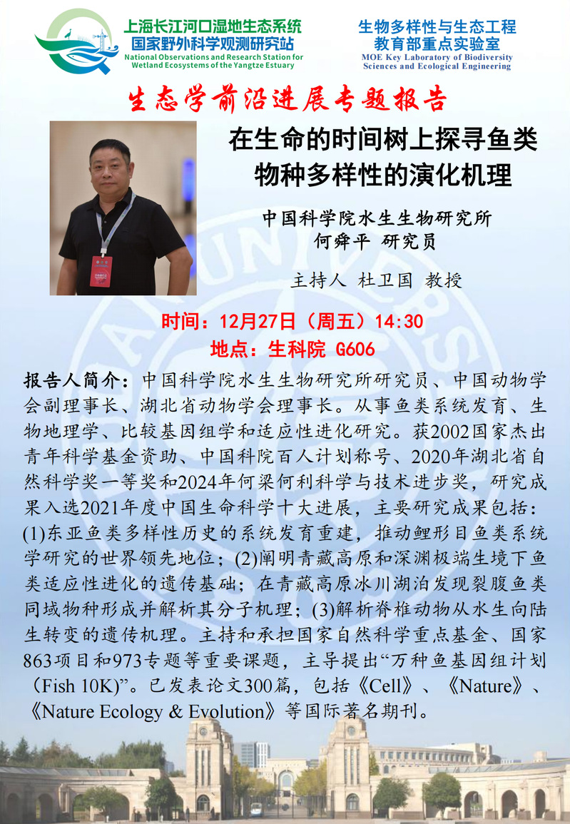 生命科学前沿学术报告--2024-12-27(周五)14:30,何舜平 研究员(中国科学院水生生物研究所)